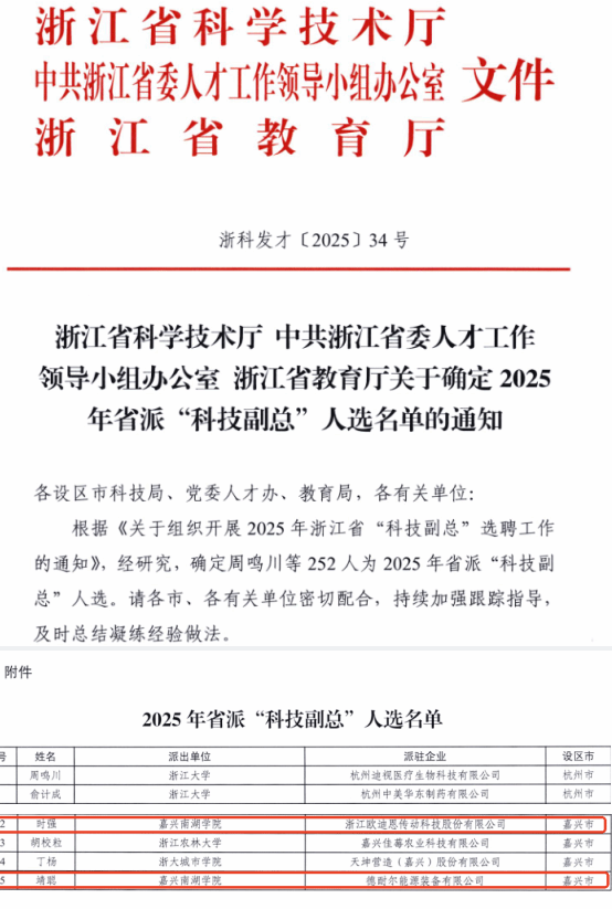 据了解,浙江省“科技副总”是2025年由高校、科研院所选派科研人员赴企业兼任技术管理职务的柔性引才机制,旨在推动产学研深度融合,助力企业技术攻关与产业升级。本次选拔经过单位推荐、资格审查、专家评审等工作程序,从全省1700余名申报人员中择优选拔,最终仅252名优秀科技人才获此殊荣。