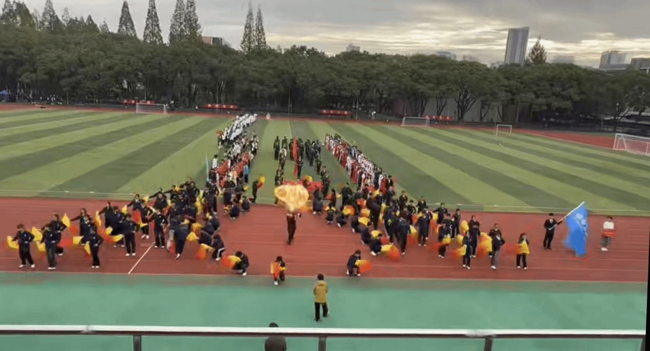 2025年11月6日,嘉兴南湖学院第五届体育运动会在田径场隆重开幕。机电工程学院方阵以一袭深蓝惊艳亮相,行至主席台前,一场融合传统与现代的表演精彩上演:团扇舞姿清雅,功夫扇开合生风,更有一曲“喷火”绝技瞬间点燃全场,赢得雷鸣掌声,尽显机电学子的朝气与创意。