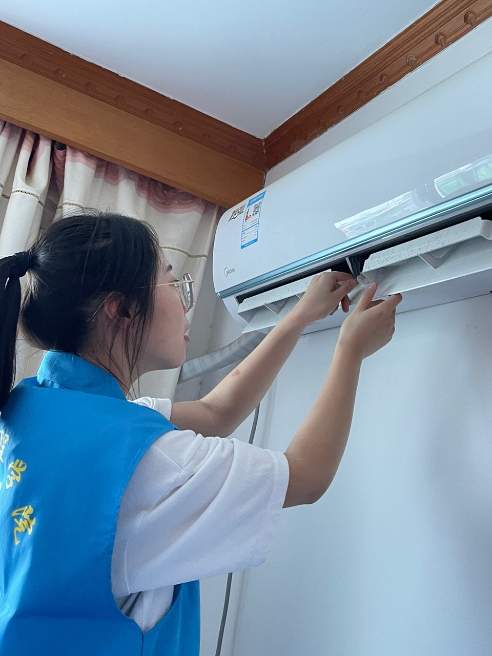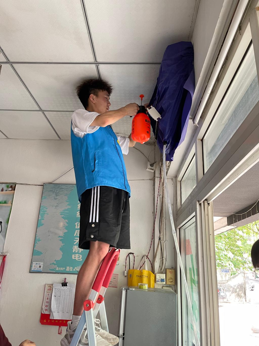 志愿者们顶着炎炎烈日,来到社区居民家中。当得知社区大部分居住的是老年人,日常生活多有不便时,志愿者清洗空调时也显得更加细致认真。过程中,志愿者还时不时地与长辈们交流生活趣事,询问他们的身体状况,使得此次活动的氛围也更加和谐美好。