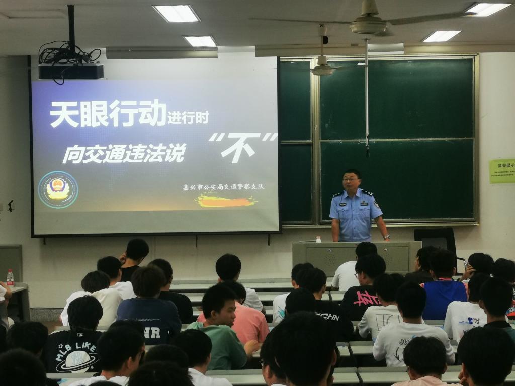 为配合嘉兴交警开展“天眼行动”,共创文明城市,机电工程学院周四下午在教二A126组织开展了交通安全警示教育学习会。学习会由嘉兴市公安局交警支队一大队新兴中队中队长李俊主讲,学工办孙华军老师主持,全体新生、班主任、辅导员参加了本次学习会。