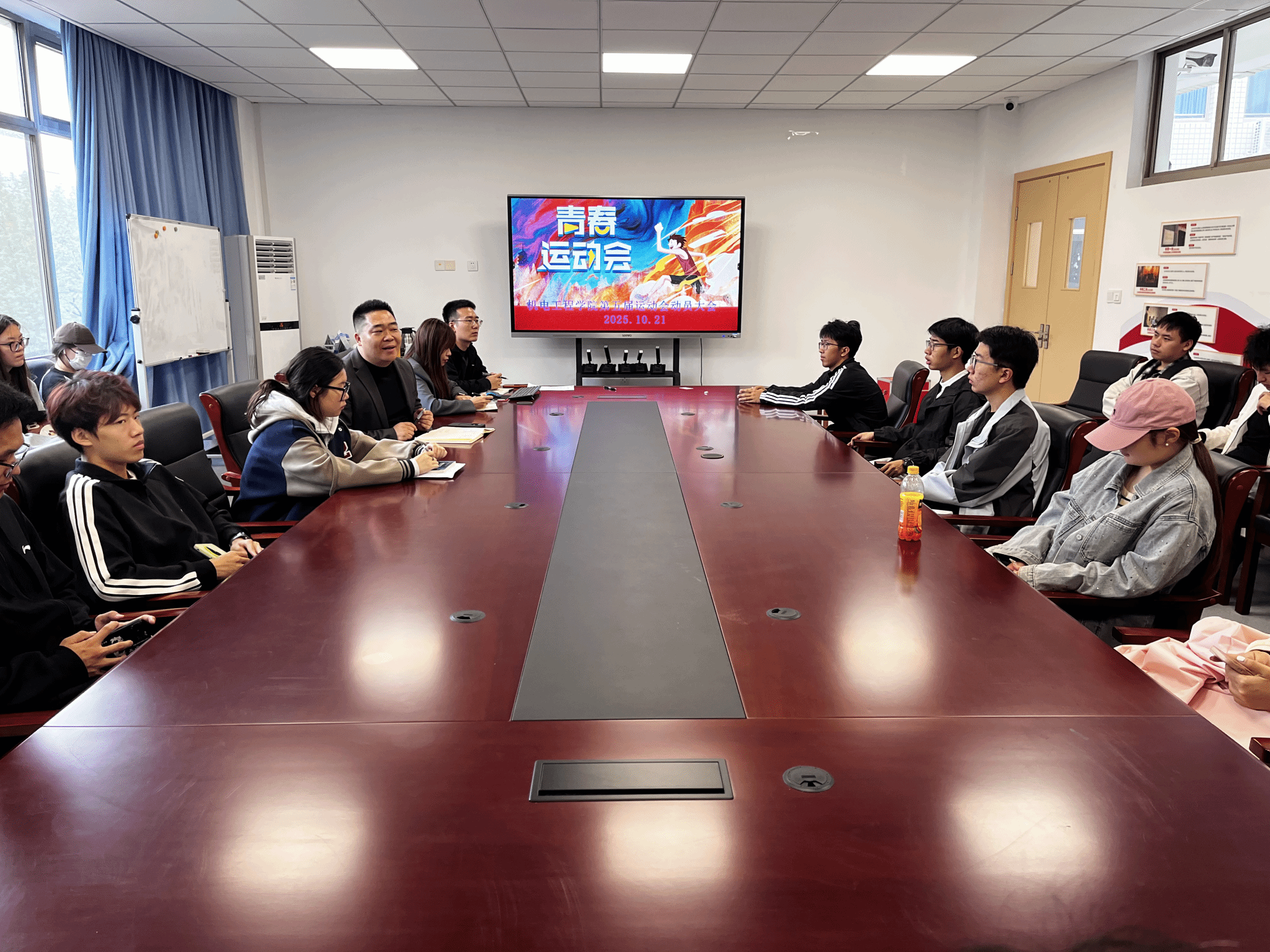 为备战我校2025-2026年秋季运动会,激发参赛热情,嘉兴南湖学院机电工程学院于2025年10月21日中午在8333会议室举行赛前动员大会。学院党委副书记孙华军、团委书记陈煜、副书记张雨逸及各班级学生骨干出席会议。
