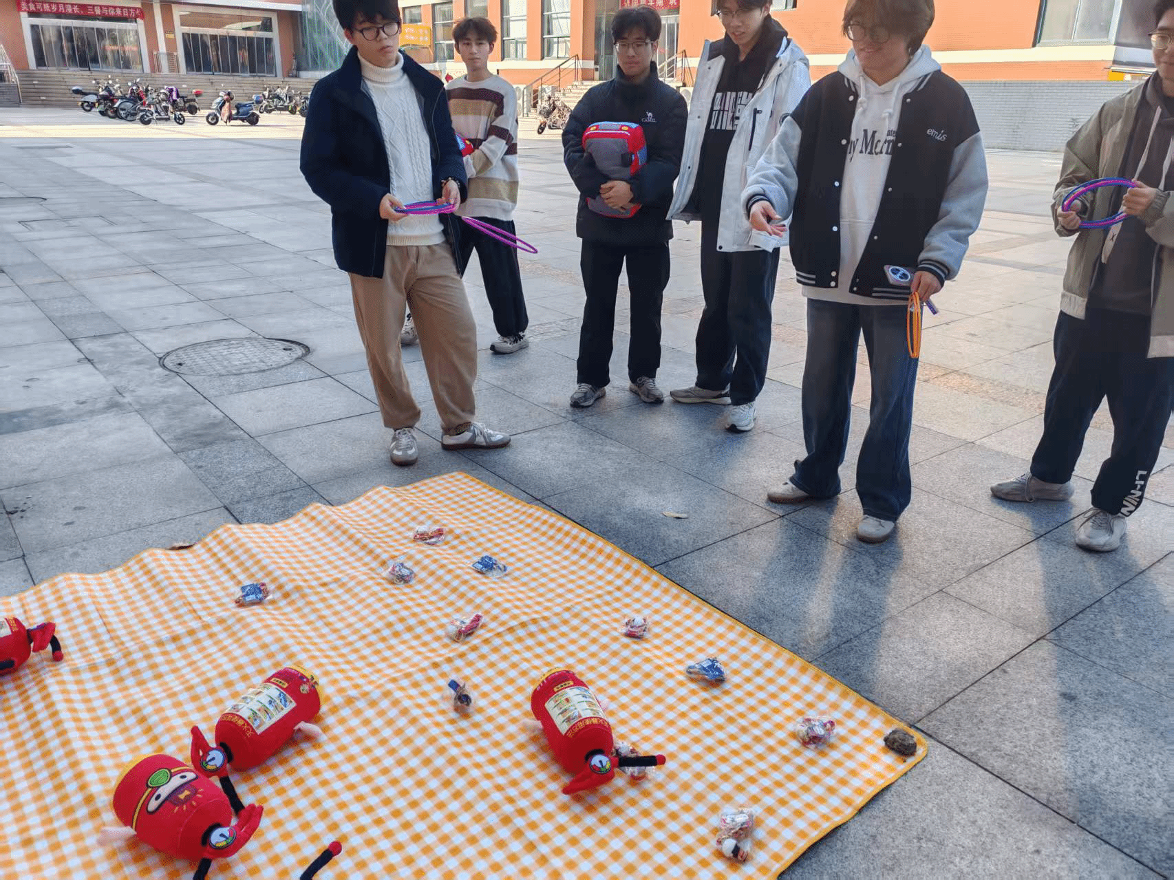 活动现场气氛热烈,形式丰富多样。权益部工作人员精心策划了消防知识现场问答环节,将冬季宿舍用电安全、实验室防火规范及应急逃生技巧融入其中。师生们踊跃抽取问题卡片作答,在互动中不仅收获了定制钥匙扣、消防主题公仔等精美奖品,更在轻松愉快的氛围中掌握了实用的消防技能。此外,现场设置的趣味套圈小游戏也吸引了众多同学驻足参与,有效调动了大家关注消防安全的积极性。