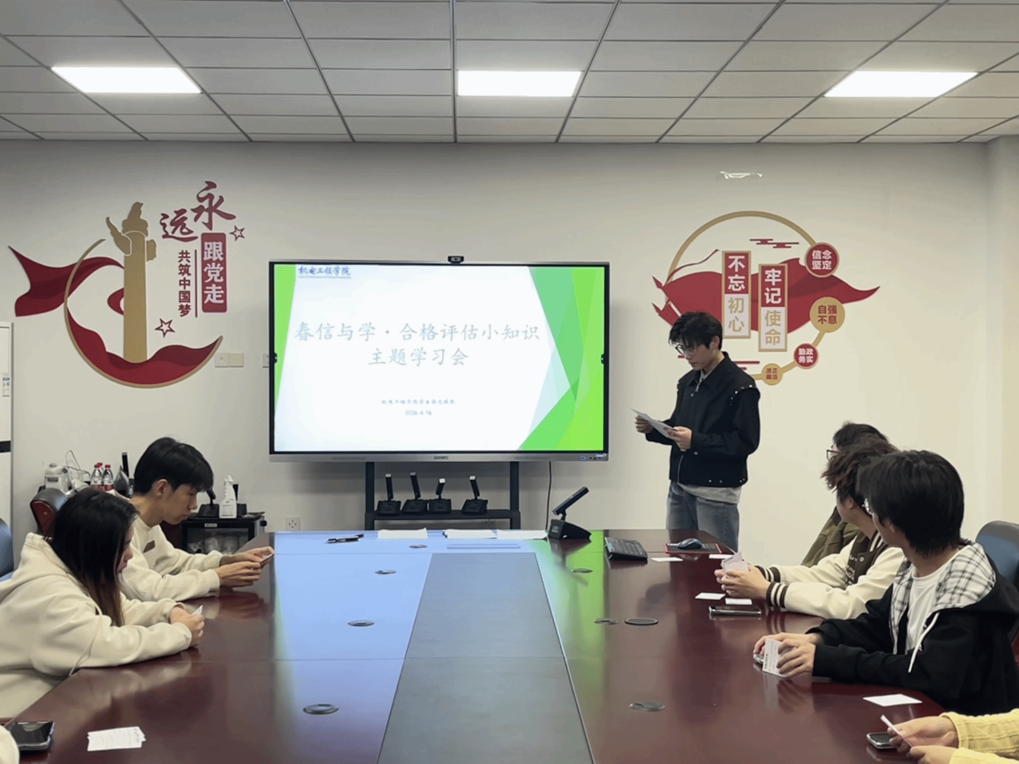 为积极推进本科教学工作合格评估工作,强化团学骨干迎评意识与责任担当,提高政治站位,2026年4月16日晚,机电工程学院学生会在机电楼8333精心举办了“春信与学·合格评估小知识”主题学习会,全体团学骨干齐聚一堂。