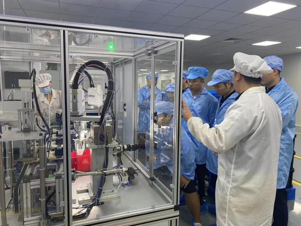 公司董事长助理郭杰介绍了公司的发展历程、主营产品和市场状况,并带领学院一行了解公司的生产车间。他表示,企业将在技术攻关、人才需求、基础研究等领域加大投入,希望借助这一契机与我院开展深入的产学研合作。