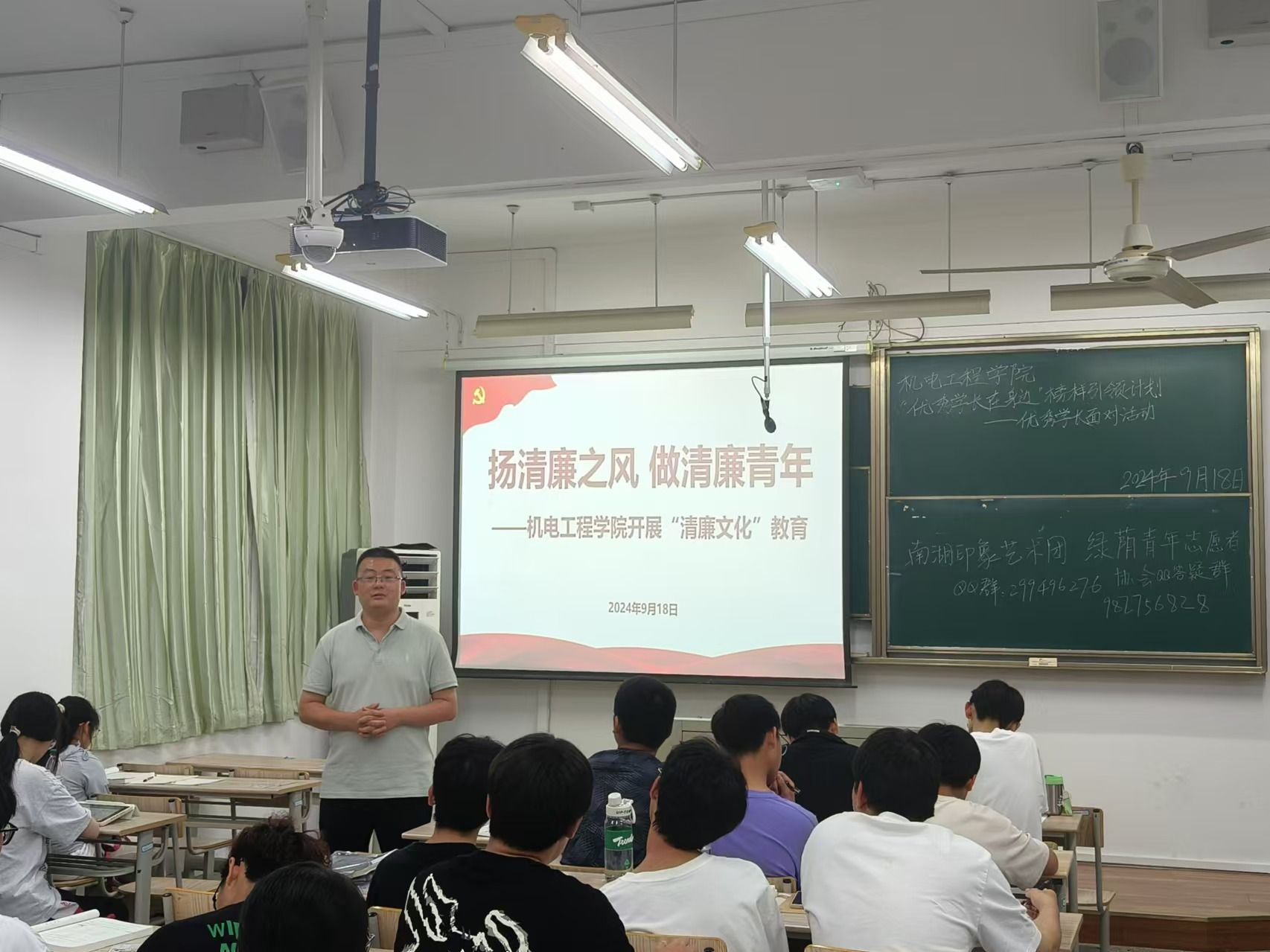 为引领青年积极践行社会主义核心价值观,提高大学生廉洁自律意识,引导青年学生扣好清白做人、干净做事的“第一粒扣子”,9月18日晚,机电工程学院面向24级各班开展以“扬清廉之风 做清廉青年”的清廉文化教育活动。